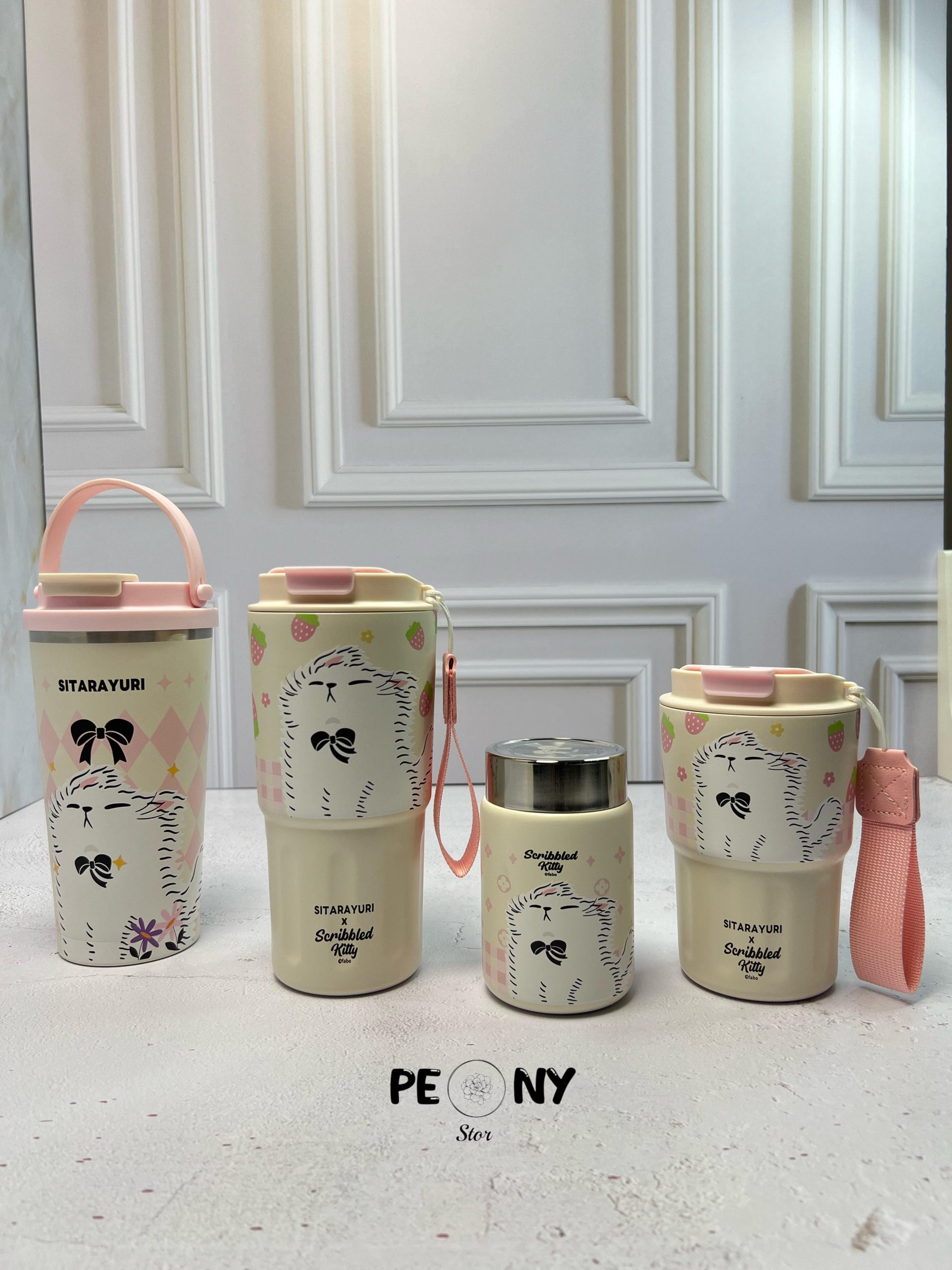 - طراحی فوقالعاده کیوت و دخترونه با گربه، پاپیون، توتفرنگی و گل – مناسب کودکان و بزرگسالان
